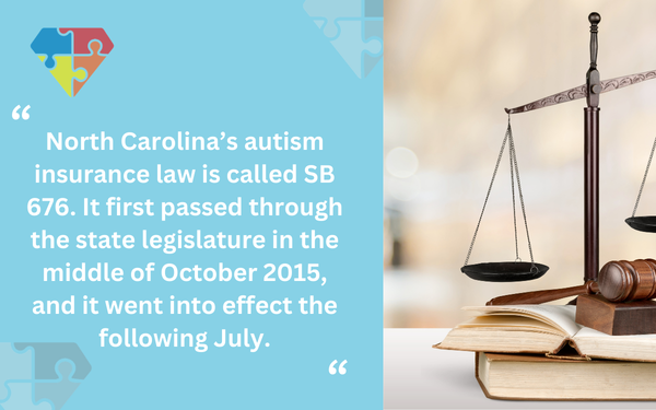 North Carolina’s autism insurance law is called SB 676. It first passed through the state legislature in the middle of October 2015, and it went into effect the following July.