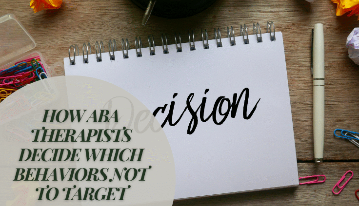 A veces, los terapeutas ABA deciden no tratar determinados comportamientos de los niños con TEA. Puede haber muchas razones para ello, por ejemplo, si no son perjudiciales, son apropiados para la edad, socialmente aceptables y no obstaculizan las capacidades de aprendizaje o el desarrollo del niño.