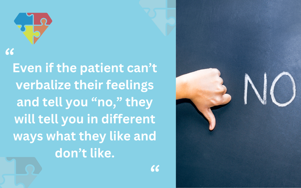 Aun así, los terapeutas ABA deben dar prioridad a la dignidad de todos sus clientes, independientemente de su edad o capacidad de desarrollo. Aunque el paciente no pueda verbalizar sus sentimientos y decirte "no", te dirá de distintas maneras lo que le gusta y lo que no.