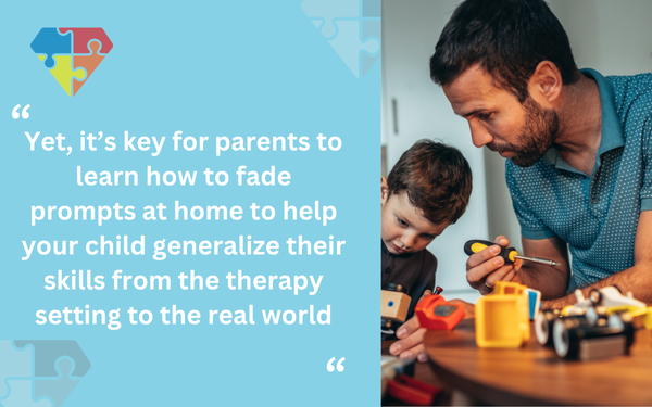 Este proceso ocurre primero en el entorno de terapia. Sin embargo, es clave que los padres aprendan a desvanecer las indicaciones en casa para ayudar a su hijo a generalizar sus habilidades del entorno de terapia al mundo real.