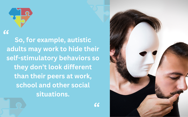 So, for example, autistic adults may work to hide their self-stimulatory behaviors so they don’t look different than their peers at work, school and other social situations.