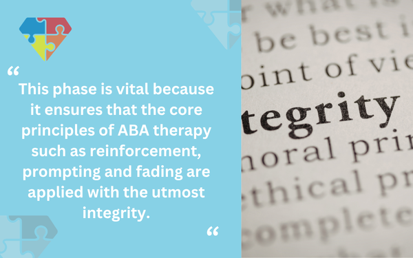 This phase is vital because it ensures that the core principles of ABA therapy such as reinforcement, prompting and fading are applied with the utmost integrity.