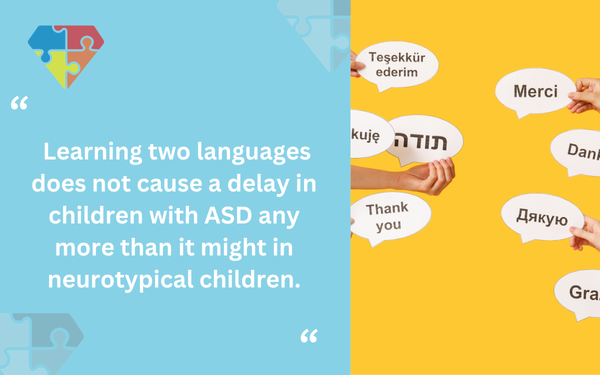 Research has shown that children with autism are capable of becoming bilingual. Learning two languages does not cause a delay in children with ASD any more than it might in neurotypical children.