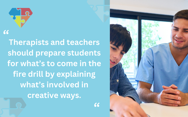 By slowly exposing the student to parts of the fire drill one at a time, it can make it easier for them to grasp the concept as they witness others progressing through it — all while not feeling too anxious or overwhelmed.