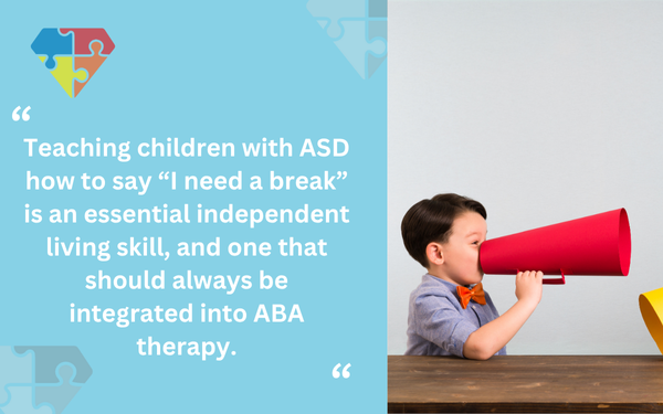 Teaching children with ASD how to say “I need a break” is an essential independent living skill, and one that should always be integrated into ABA therapy.