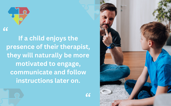 If a child enjoys the presence of their therapist, they will naturally be more motivated to engage, communicate and follow instructions later on.